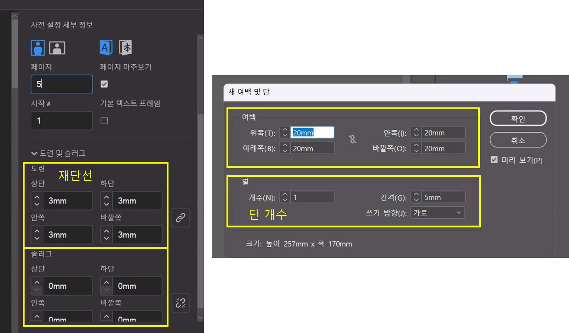 내가 원하는 폭, 길이, 페이지 개수 등 용지를 직접 설정할 수 있습니다. 단위는 보통 mm 사용합니다.